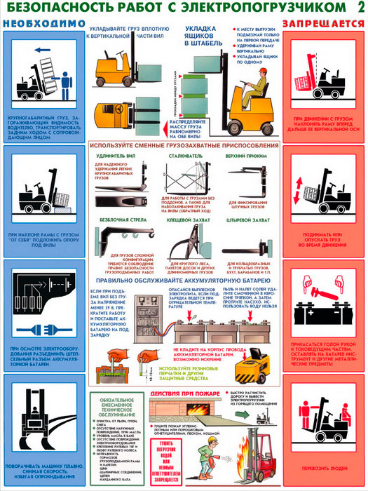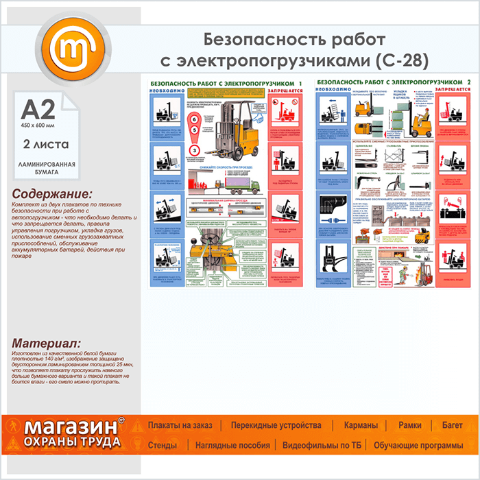 Плакаты «Безопасность работ с электропогрузчиками» (С-28, ламинированная бумага, А2, 2 листа) в Кашире купить