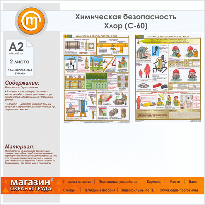 Плакаты «Химическая безопасность. Хлор» (С-60, ламинированная бумага, А2, 2 листа) в Кашире купить