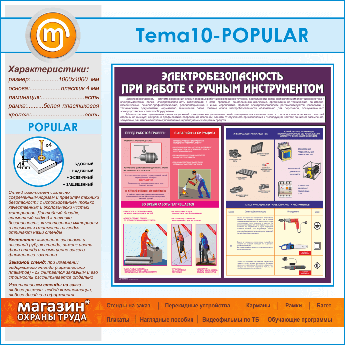 Стенд «Электробезопасность при работе с ручным инструментом» (TM-10-POPULAR) в Кашире купить