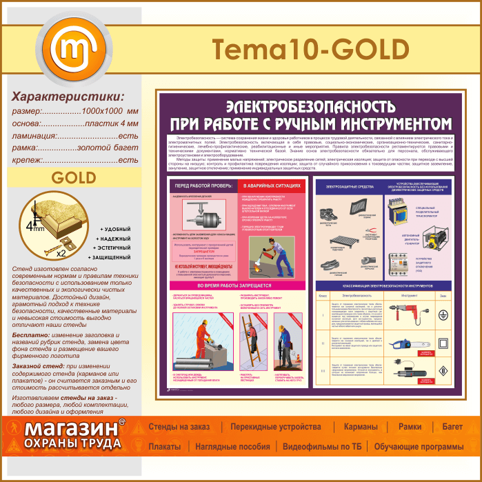 Стенд «Электробезопасность при работе с ручным инструментом» (TM-10-GOLD) в Кашире купить