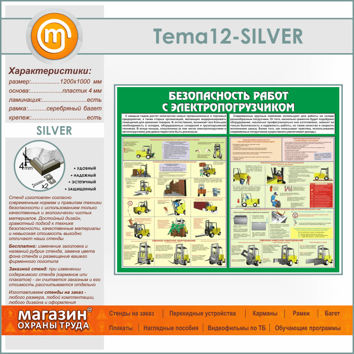 Стенд «Безопасность работ с электропогрузчиком» (TM-12-SILVER) в Кашире купить