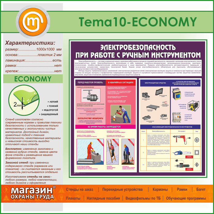 Стенд «Электробезопасность при работе с ручным инструментом» (TM-10-ECONOMY) в Кашире купить