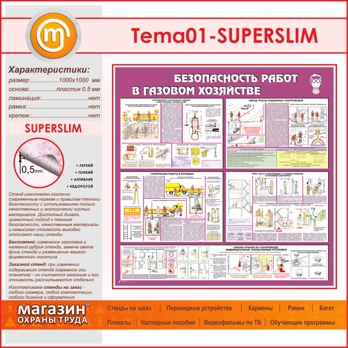 Стенд «Безопасность работ в газовом хозяйстве» (TM-01-SUPERSLIM) в Кашире купить
