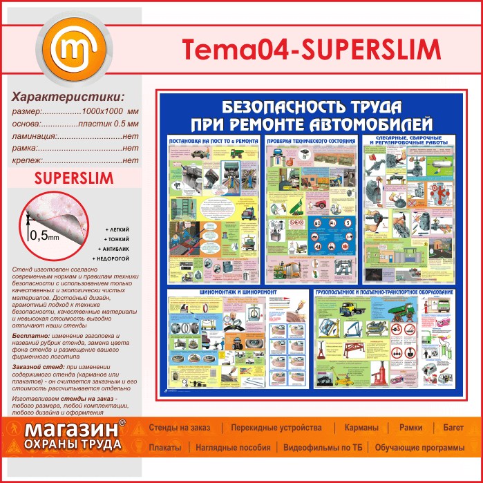 Стенд «Безопасность труда при ремонте автомобилей» (TM-04-SUPERSLIM) в Кашире купить