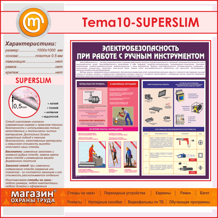 Стенд «Электробезопасность при работе с ручным инструментом» (TM-10-SUPERSLIM) в Кашире купить