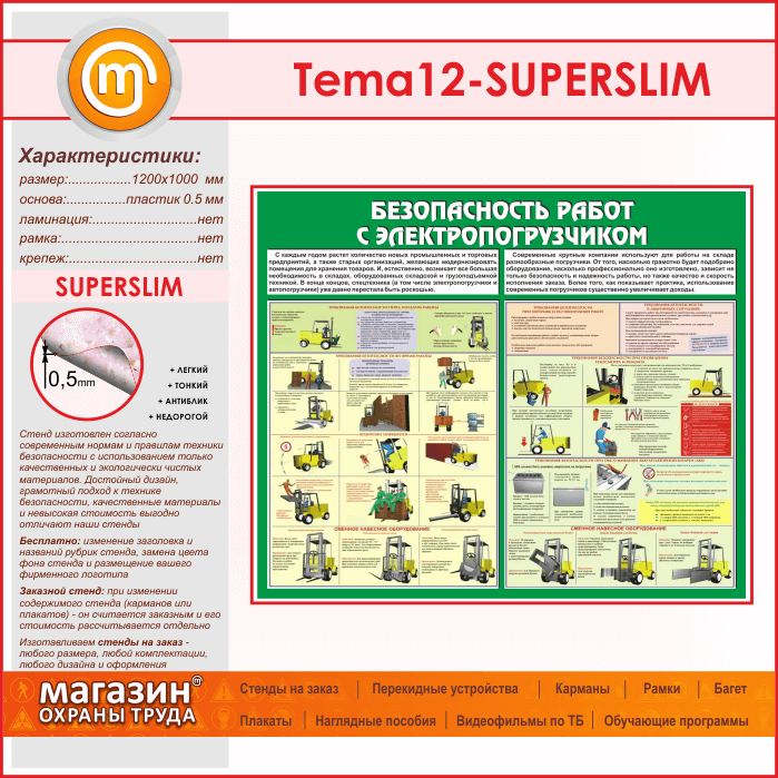 Стенд «Безопасность работ с электропогрузчиком» (TM-12-SUPERSLIM) в Кашире купить
