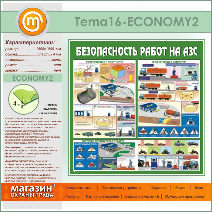 Стенд «Безопасность работ на автозаправочных станциях» (TM-16-ECONOMY2) в Кашире купить