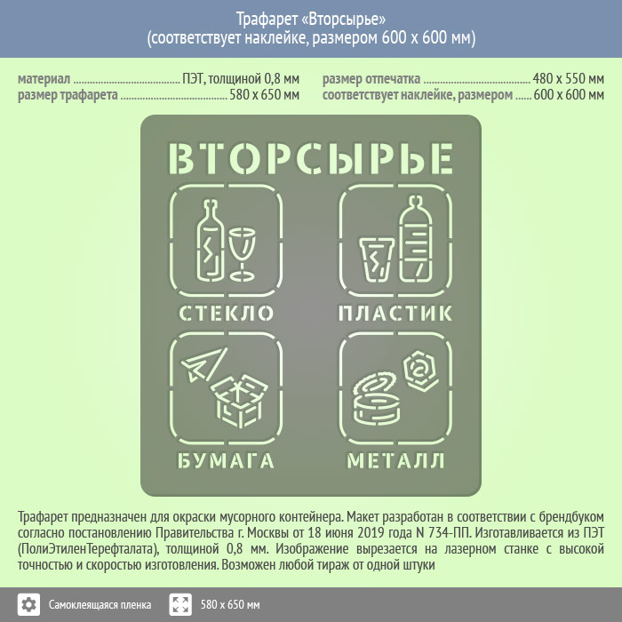Трафарет «Вторсырье» (соответствует наклейке, размером 600х600 мм) в Кашире купить