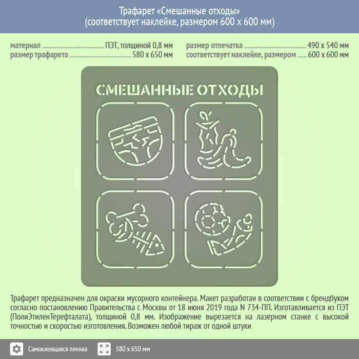 Трафарет «Смешанные отходы» (соответствует наклейке, размером 600х600 мм) в Кашире купить