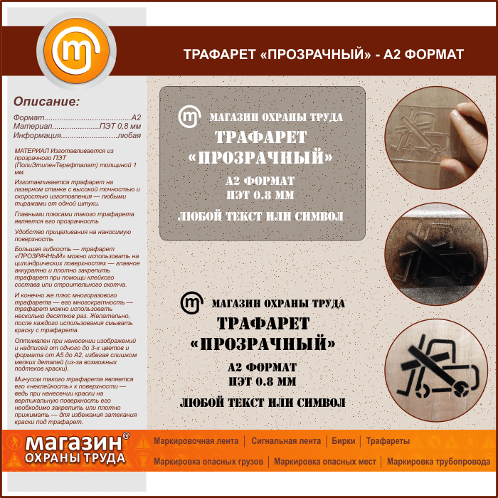 Трафарет «ПРОЗРАЧНЫЙ» (А2 формат, ПЭТ 0,8 мм) в Кашире купить