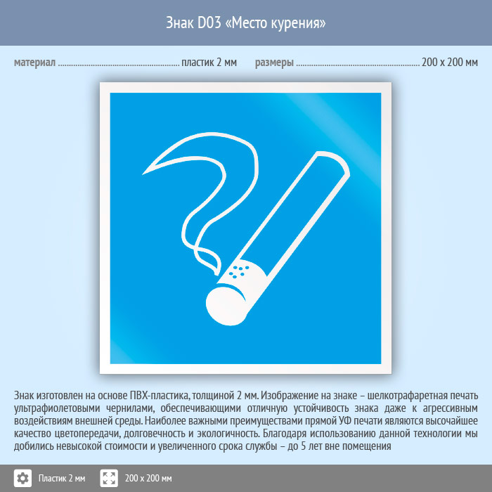 Знак D03 «Место курения» (пластик, 200х200 мм) в Кашире купить