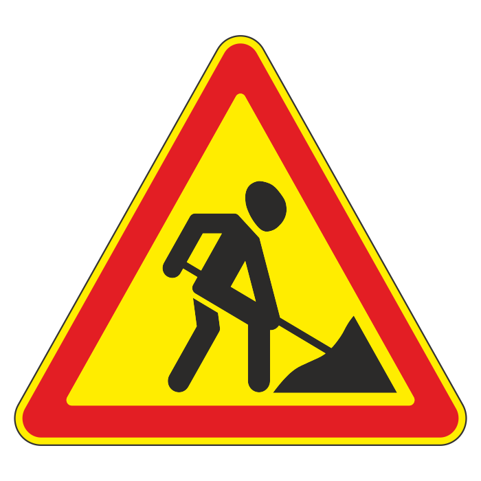 Дорожный знак 1.25 «Дорожные работы» (временный) (металл 0,8 мм, IV типоразмер: сторона 1500 мм, С/О пленка: тип А коммерческая) в Кашире купить