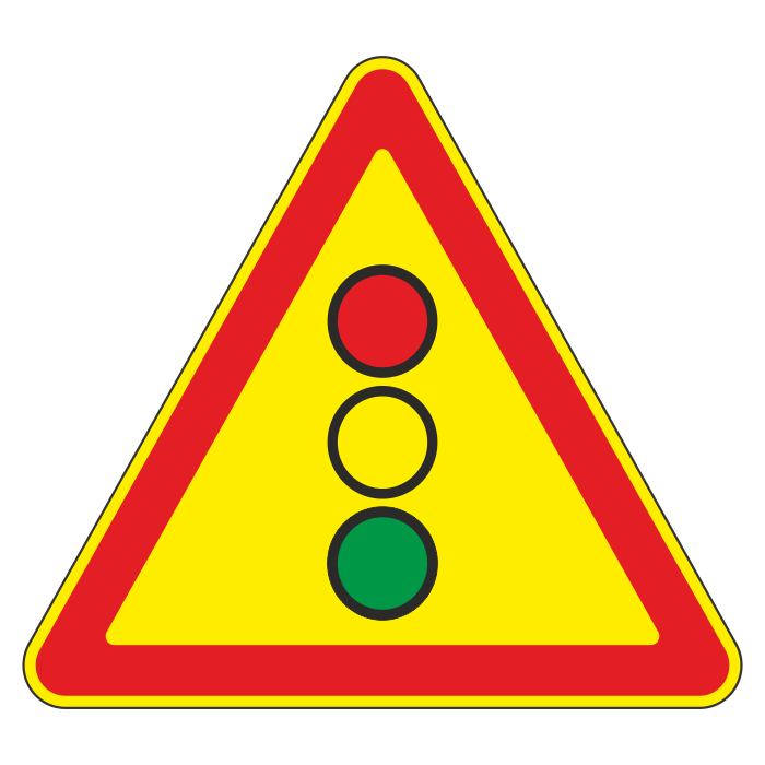 Дорожный знак 1.8 «Светофорное регулирование» (временный) (металл 0,8 мм, III типоразмер: сторона 1200 мм, С/О пленка: тип В алмазная) в Кашире купить