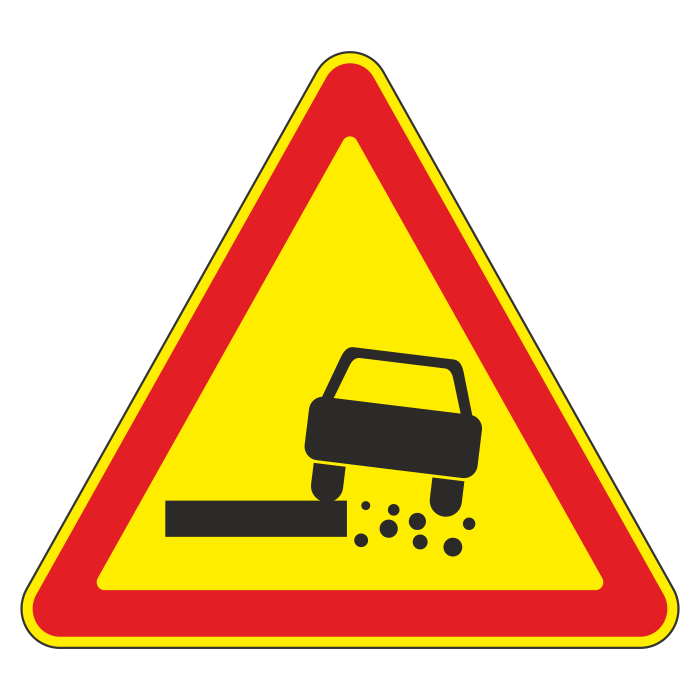 Дорожный знак 1.19 «Опасная обочина» (временный) (металл 0,8 мм, I типоразмер: сторона 700 мм, С/О пленка: тип А инженерная) в Кашире купить