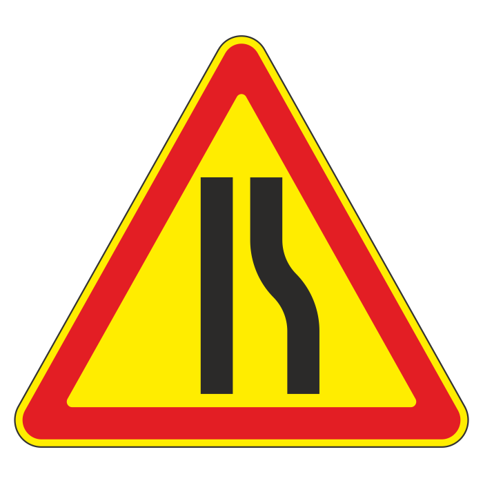 Дорожный знак 1.20.2 «Сужение дороги» (временный) (металл 0,8 мм, IV типоразмер: сторона 1500 мм, С/О пленка: тип А инженерная) в Кашире купить