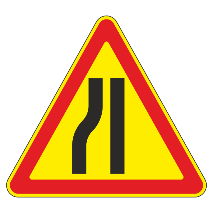 Дорожный знак 1.20.3 «Сужение дороги» (временный) (металл 0,8 мм, II типоразмер: сторона 900 мм, С/О пленка: тип А инженерная) в Кашире купить
