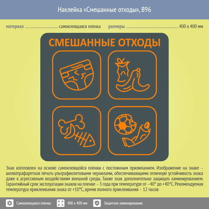 Наклейка на бак «Смешанные отходы», B96 (пленка c ламинированием, 400х400 мм) в Кашире купить