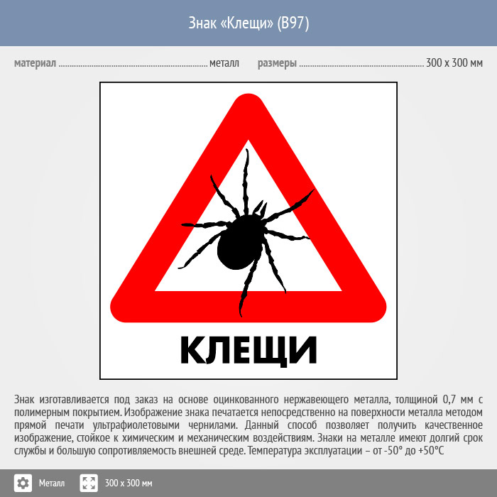 Знак «Клещи», B97 (металл, 200х200 мм) в Кашире купить
