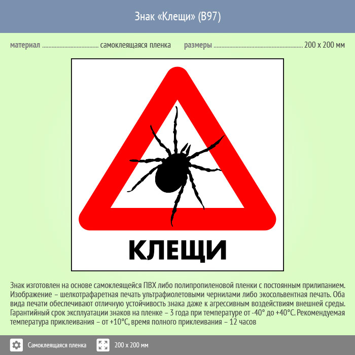 Знак «Клещи», B97 (пленка, 300х300 мм) в Кашире купить