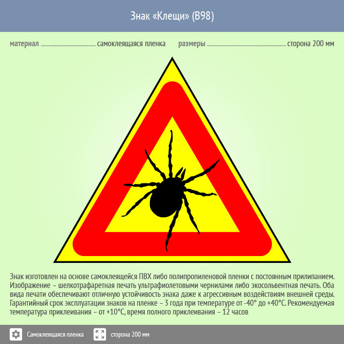 Знак «Клещи», B98 (пленка, сторона 300 мм) в Кашире купить