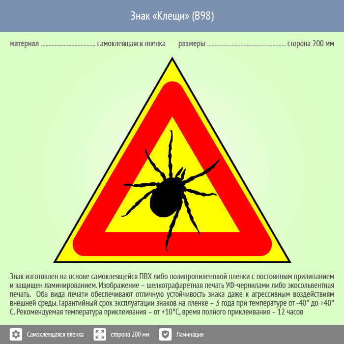 Знак «Клещи», B98 (пленка c ламинированием, сторона 300 мм) в Кашире купить