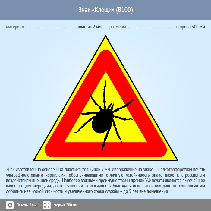 Знак «Опасно! Клещи», B100 (пластик, сторона 200 мм) в Кашире купить