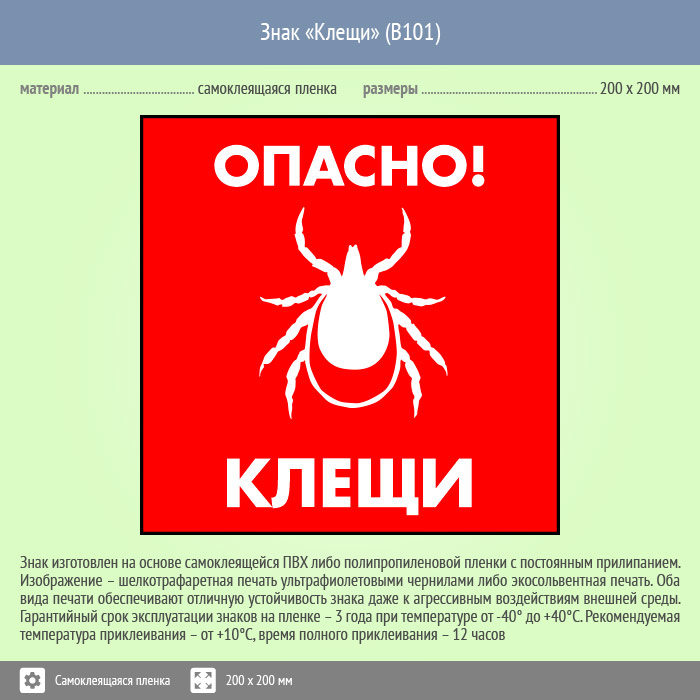 Знак «Опасно! Клещи», B101 (пленка, 200х200 мм) в Кашире купить
