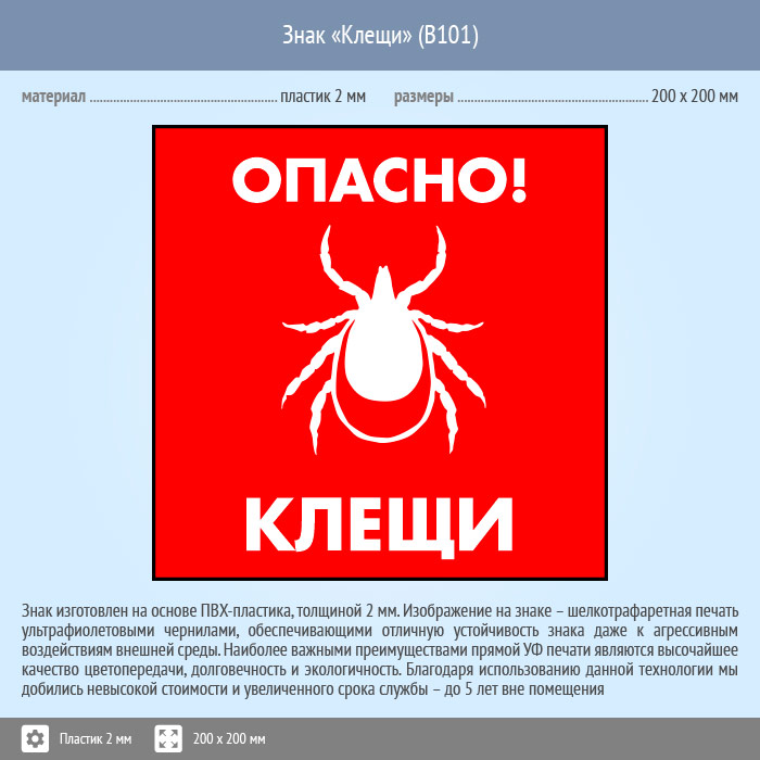 Знак «Опасно! Клещи», B101 (пластик, 200х200 мм) в Кашире купить