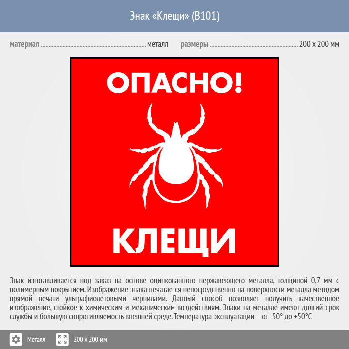 Знак «Опасно! Клещи», B101 (металл, 200х200 мм) в Кашире купить