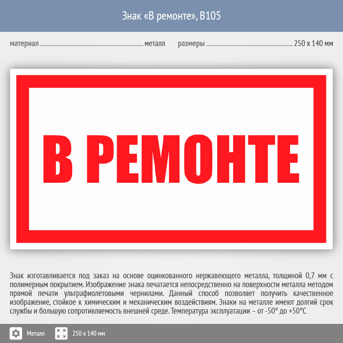 Знак «В ремонте», B105 (металл, 250х140 мм) в Кашире купить