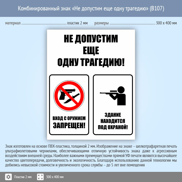 Комбинированный знак «Не допустим еще одну трагедию», B107 (пластик, 300х400 мм) в Кашире купить