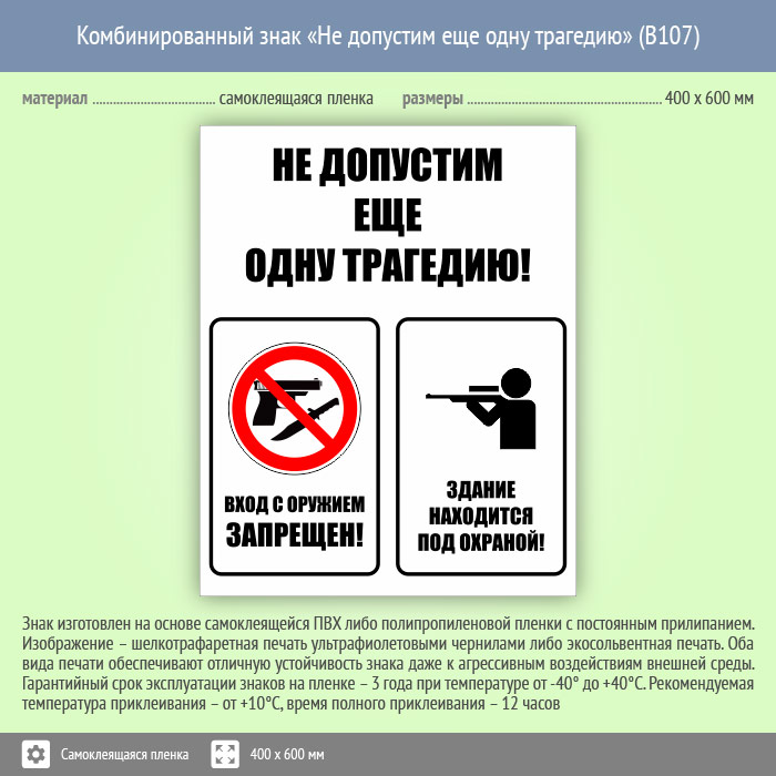 Комбинированный знак «Не допустим еще одну трагедию», B107 (пленка, 400х600 мм) в Кашире купить