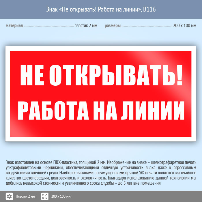 Знак «Не открывать! Работа на линии», B116 (пластик, 200х100 мм) в Кашире купить