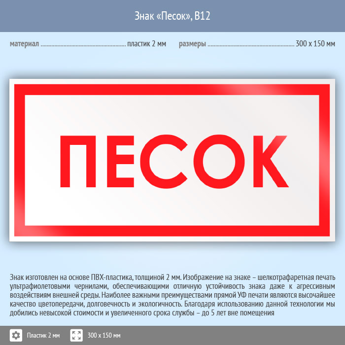 Знак «Песок», B12 (пластик, 300х150 мм) в Кашире купить