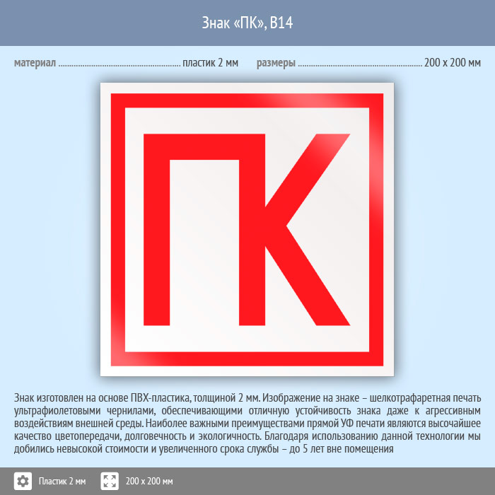 Знак «ПК», B14 (пластик, 200х200 мм) в Кашире купить