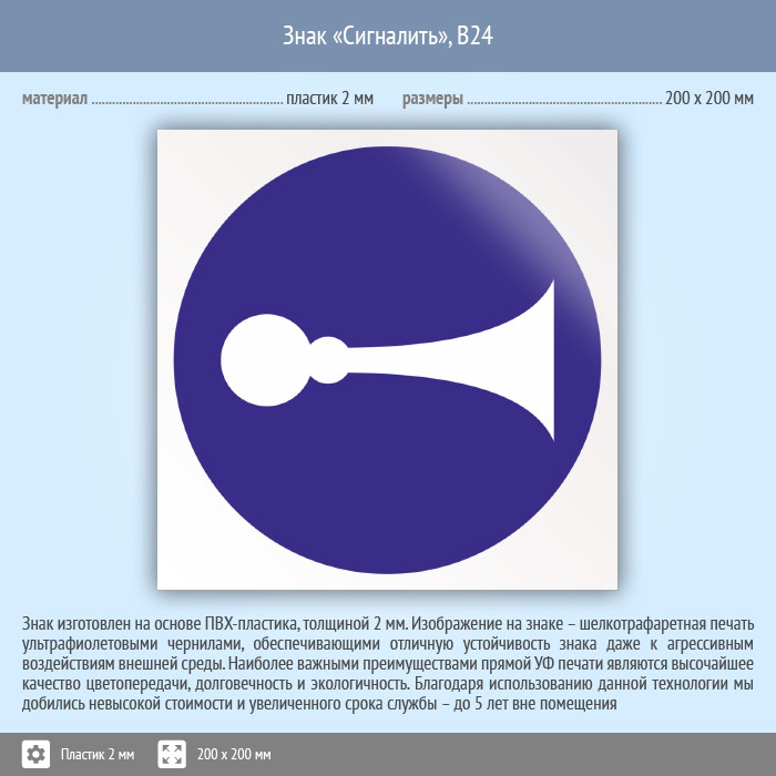Знак «Сигналить», B24 (пластик, 200х200 мм) в Кашире купить
