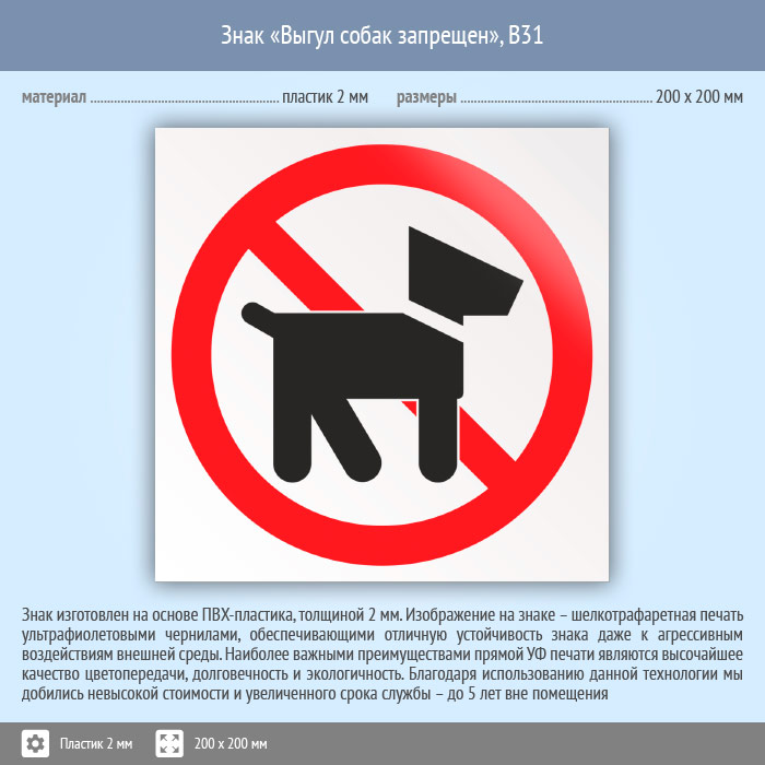 Знак «Выгул собак запрещен», B31 (пластик, 200х200 мм) в Кашире купить