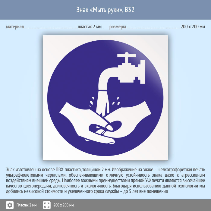 Знак «Мыть руки», B32 (пластик, 200х200 мм) в Кашире купить