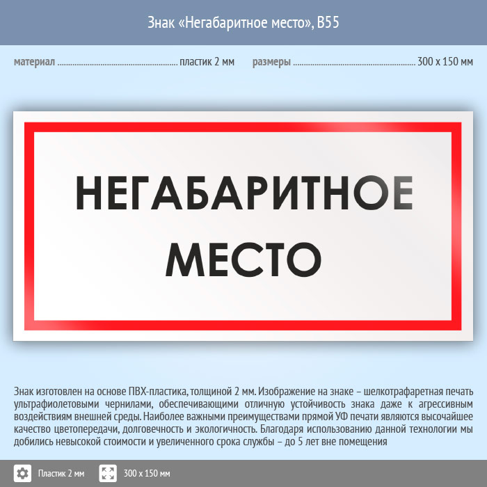 Знак «Негабаритное место», B55 (пластик, 300х150 мм) в Кашире купить