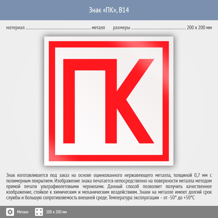 Знак «ПК», B14 (металл, 200х200 мм) в Кашире купить