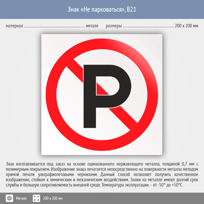 Знак «Не парковаться», B21 (металл, 200х200 мм) в Кашире купить