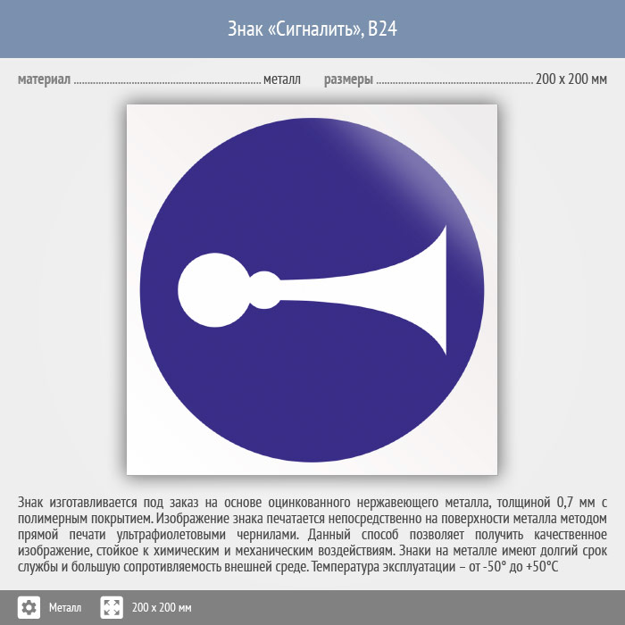 Знак «Сигналить», B24 (металл, 200х200 мм) в Кашире купить