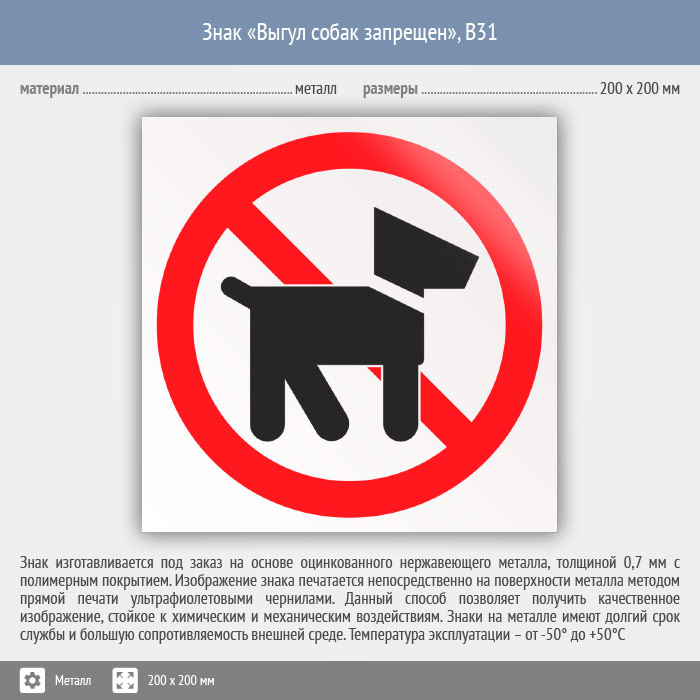 Знак «Выгул собак запрещен», B31 (металл, 200х200 мм) в Кашире купить