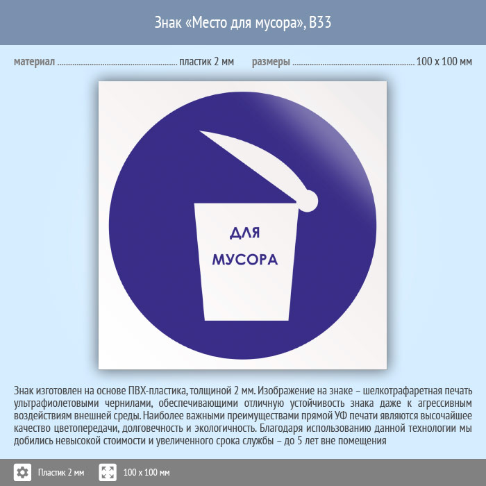 Знак «Место для мусора», B33 (пластик, 100х100 мм) в Кашире купить