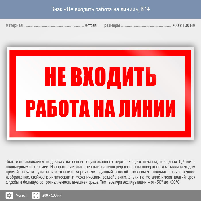 Знак «Не входить работа на линии», B34 (металл, 200х100 мм) в Кашире купить