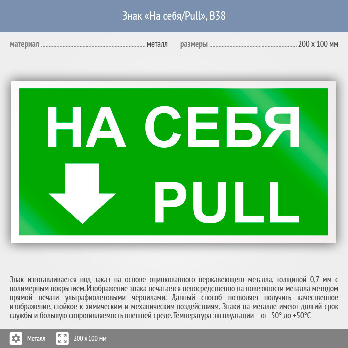 Знак «На себя/Pull», B38 (металл, 200х100 мм) в Кашире купить