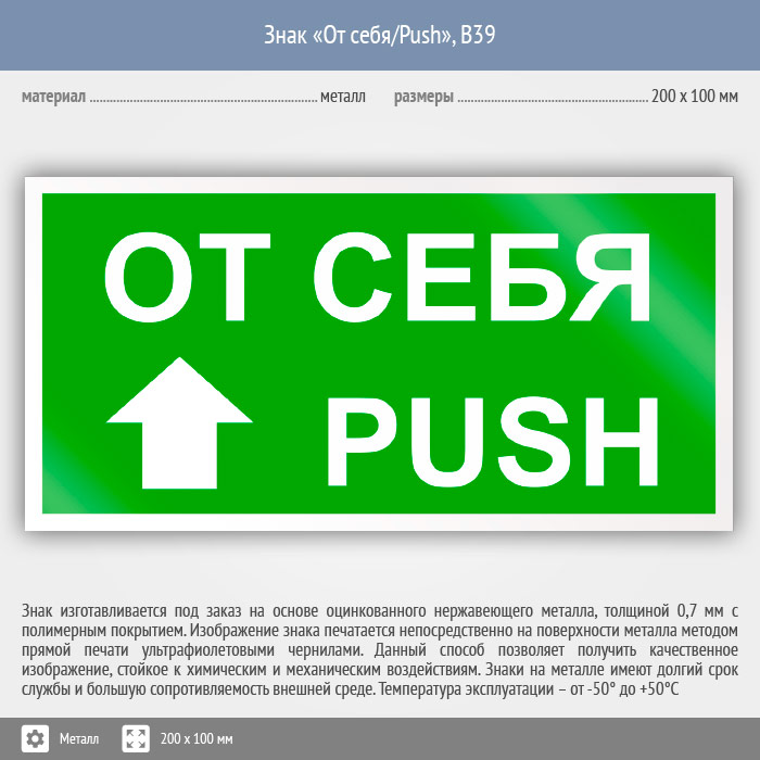Знак «От себя/Push», B39 (металл, 200х100 мм) в Кашире купить