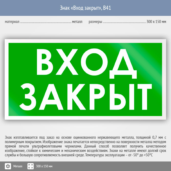 Знак «Вход закрыт», B41 (металл, 300х150 мм) в Кашире купить