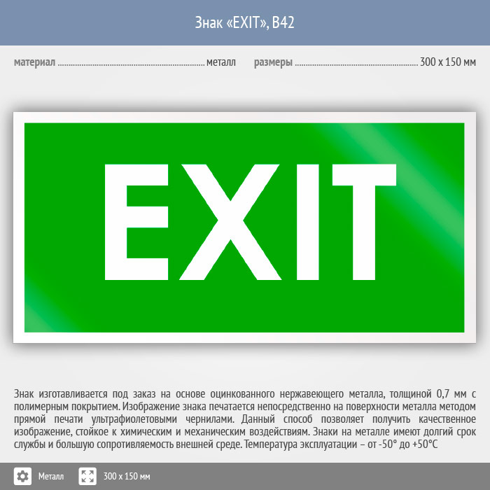 Знак «EXIT», B42 (металл, 300х150 мм) в Кашире купить