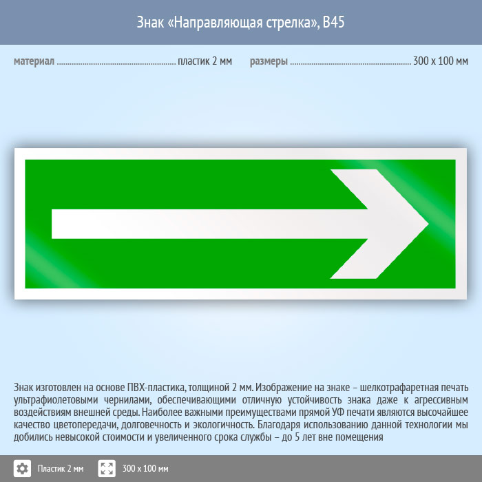Знак «Направляющая стрелка», B45 (пластик, 300х100 мм) в Кашире купить